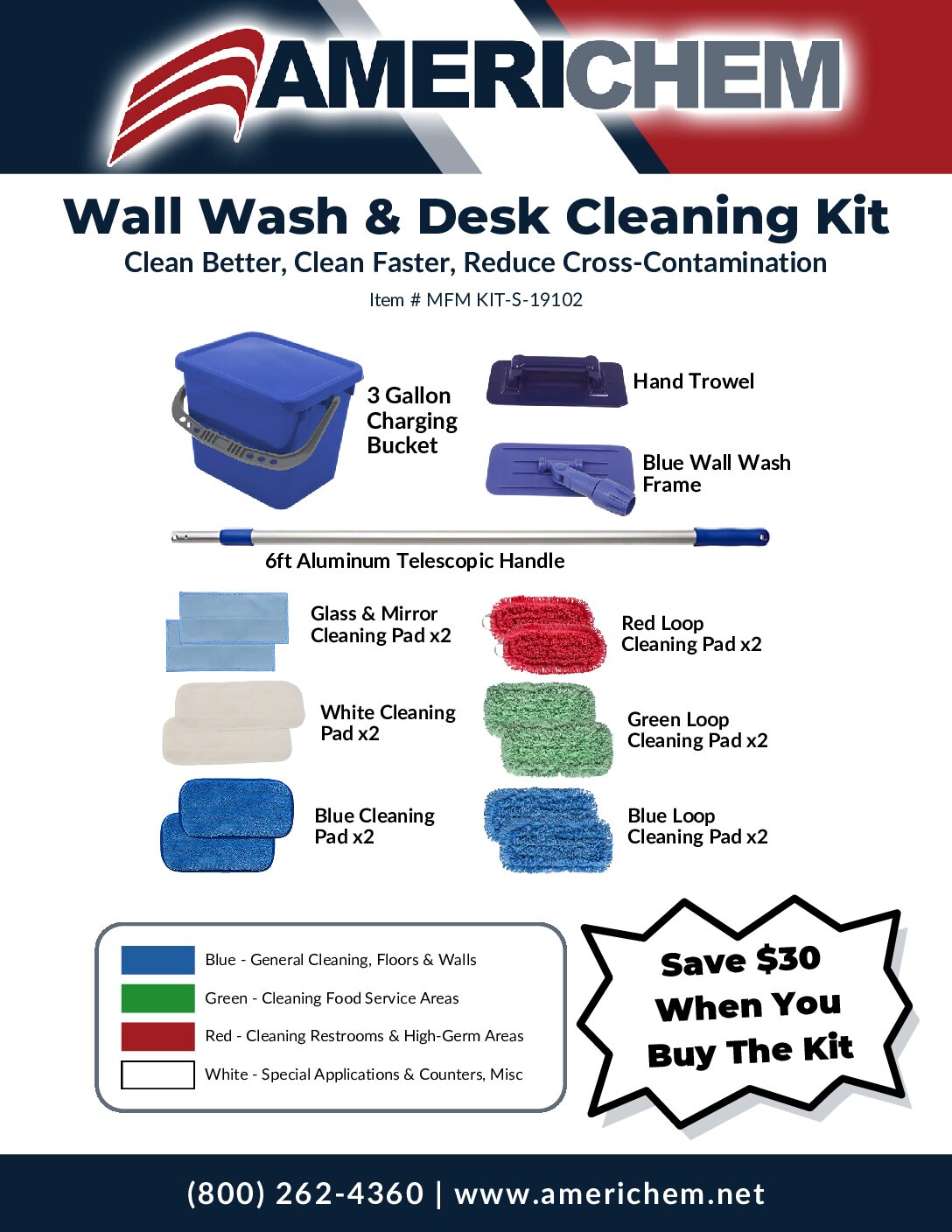- Kit includes: S-19102 blue pad bucket with lid, HT8 hand trowel, WW8 wall wash frame, AHAN telescopic handle, 2 ea of white pads, blue pads and glass pads